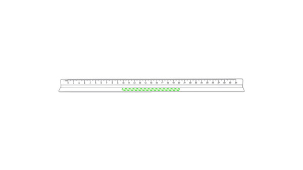 30cm triangular design aluminum scale meter. Scales 1:20/1:25/1:50/1:75/1:100. Smooth face for printing. Presented in an individual box.