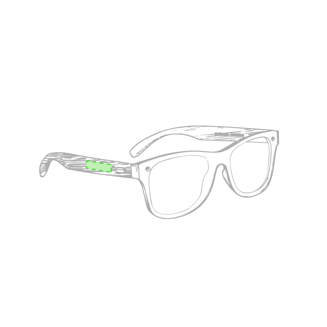 Nature line sunglasses with UV400 protection. Black frame in resistant PC material, with mirror effect lenses and arms made of natural bamboo. Presented in an attractive eco-design case.