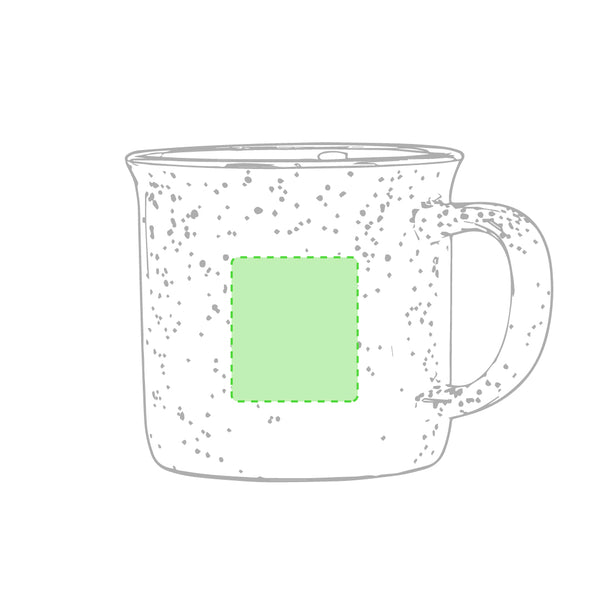 350ml capacity, ceramic mug with a vintage design. In combination of mottled coloured outside and matching inside, with black edge. Presented in an individual box with kraft finish.