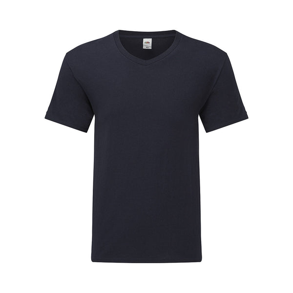 Adult color T-shirt Iconic V-Neck by Fruit Of The Loom. Made in 100% brushed cotton Ring Spun 150g/m2. Soft touch and modern cut, with narrow 1x1 ribbed V-neck and matching placket. Easily removable label and available in a wide range of colors. Sizes S, M, L, XL, XXL.