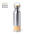 Bottle with original retro style and 800 ml capacity. Stainless steel body with bamboo band, stainless steel screw lid and bamboo detail. Presented in an individual box of eco design in kraft cardboard.