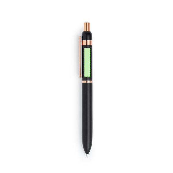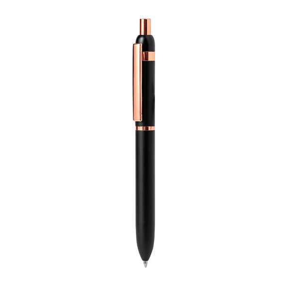 Stylish ball pen specially designed for laser engraving with rose-coloured logo. Push-button mechanism, metal clip and fittings in copper finish, with plastic details in rose finish. With jumbo cartridge and blue ink. Available in two distinctive colours.Presented in an elegant black design box.