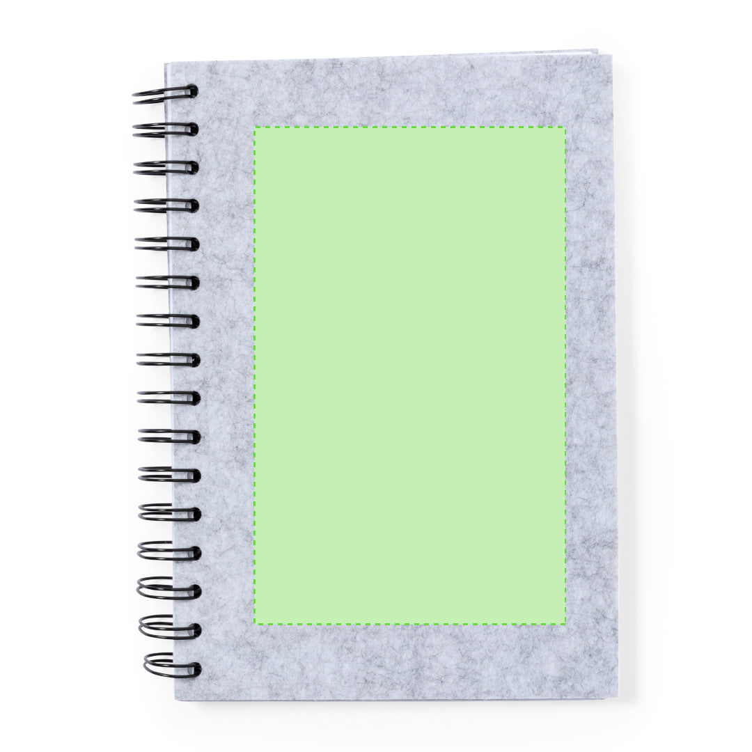 Ring notebook with covers in soft recycled RPET felt. Inside with 100 white sheets with single line layout. Including RPET badge. Presented in an individual recycled bag.The recycled RPET felt is the result of the combination of the recycling process of plastic materials together with the millenary technique of felt making, resulting in an eco-trend material that, besides being of recycled origin, also becomes recyclable.