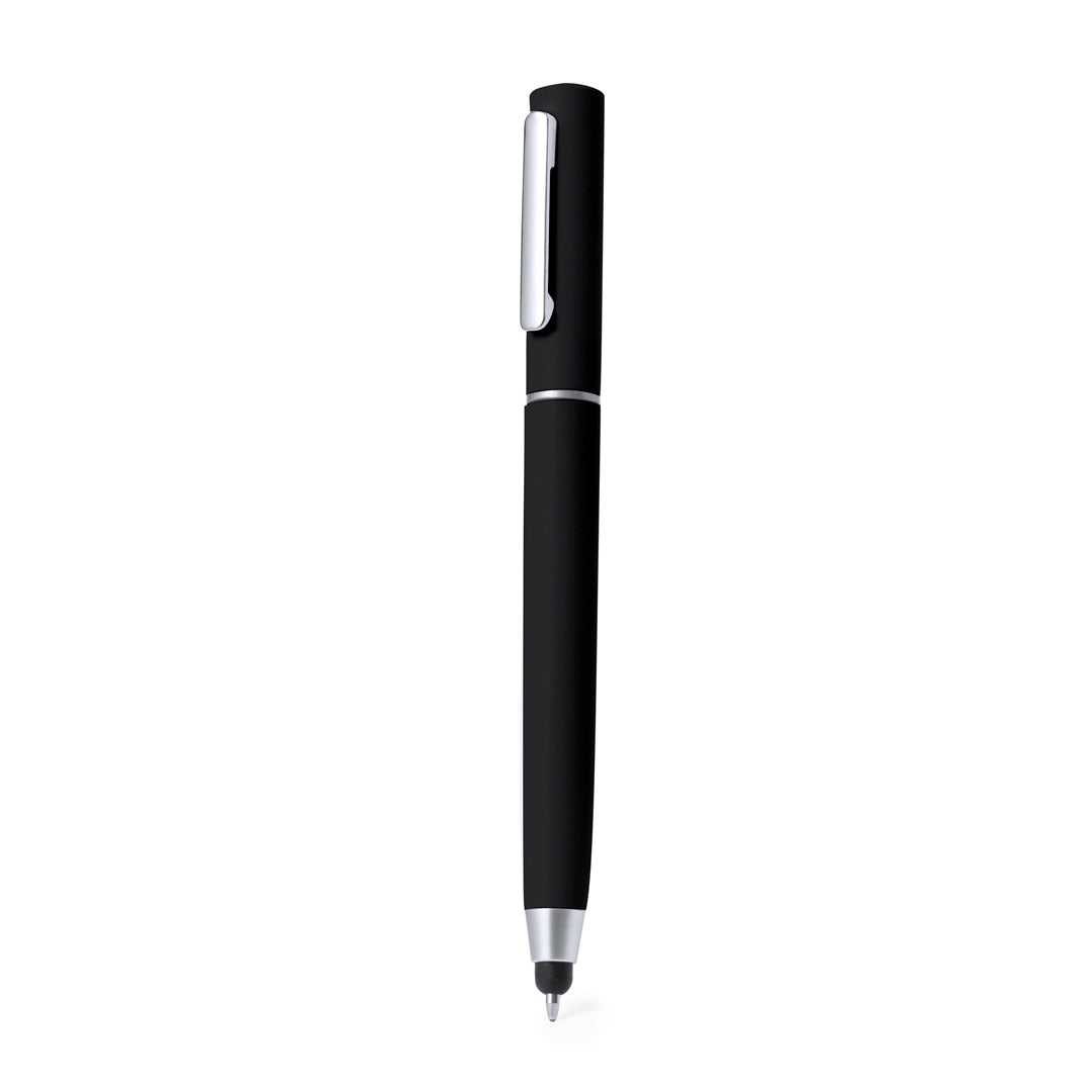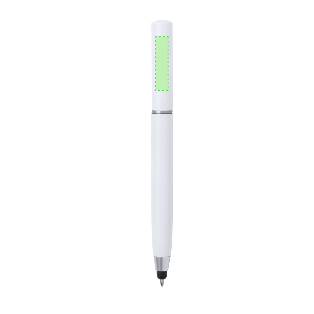Handy ball pen with twist mechanism, and cleaning accessories housed at the top of the barrel. Includes a brush and metal tip protected by a hood. With metal clip and in blue ink. Available in various colours and presented individually in a kraft box.