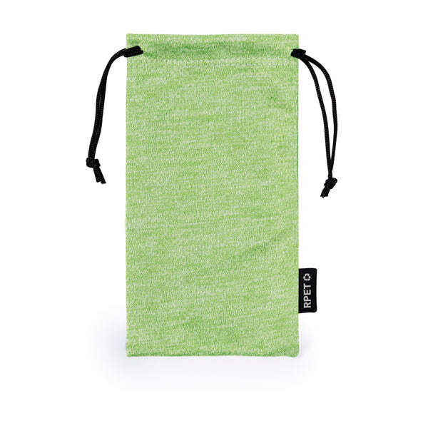 Eyewear pouch in soft RPET microfibre.Available in a wide range of fun colours, with self-closing strings and RPET label. RPET material is made from recycled plastic, thus promoting the reuse of plastic waste and helping the sustainability of the planet.
