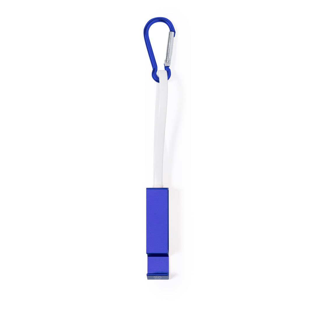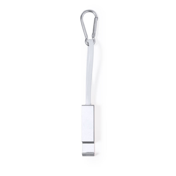 Multi-function charging cable, made of recycled aluminium and with an intelligent design for convenient storage of the charging cables, as well as easy transport. Including matching carabiner and smartphone holder, with Type C connection (input and output) and dual Micro USB / Lightning connection. Available in a variety of metallic finish colours and with Recycled Aluminium logo. Presented in an individual recycled bag.Recycled Aluminium is a material with almost infinite recycling possibilities, keeping its original properties and consuming less energy during this process.GRS Certification (Global Recycled Standard), which guarantees the recycled origin of the material used to manufacture the product.