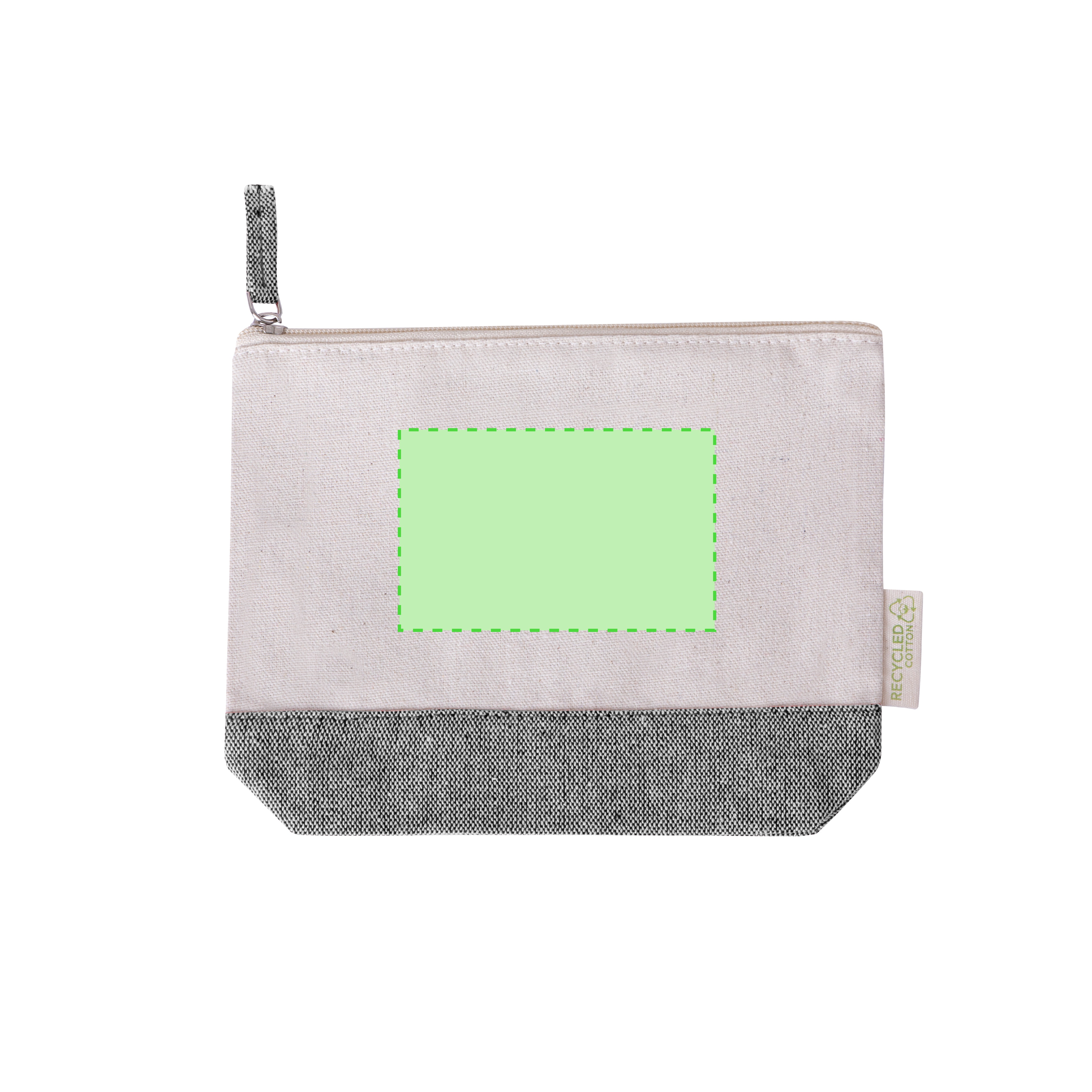 Beauty bag made of recycled cotton. Main compartment with zip closure and handle in matching colour with the base. Available in a wide range of bright colours, with recycled cotton label.