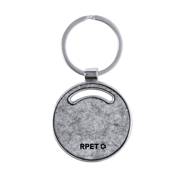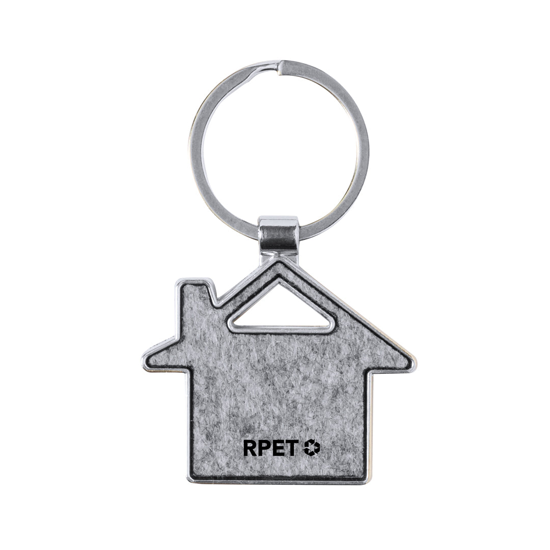 Keyring made in a combination of metal base and RPET felt sides. Available in circular design; in rectangular design with rounded corners; and in house and car shapes. With large branding area and RPET logo at the front. Presented in an individual recycled paper bag.RPET felt is the result of the combination of the recycling processes of plastic materials along with the millenary technique of felt manufacturing, resulting in an eco-trend material that, in addition to being of recycled origin, also becomes recyclable.