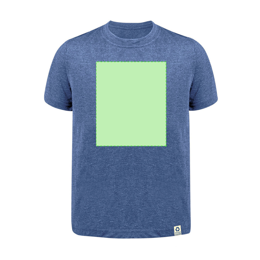 Kid T-shirt made of 60% recycled cotton in combination with RPET, single jersey fabric, 150g/m2. Easily removable label. Available in a wide range of colours, with recycled logo on the label and in sizes 4-5, 6-8, 10-12.RPET material is made from recycled plastic, thus promoting the reuse of plastic waste and helping the sustainability of the planet.
