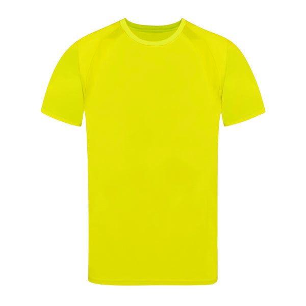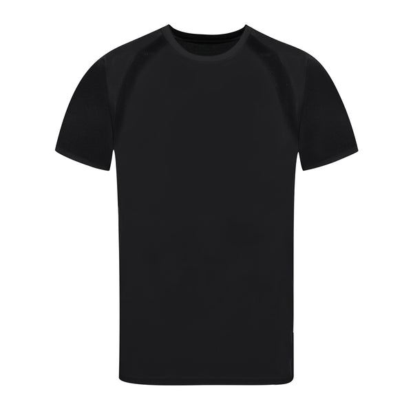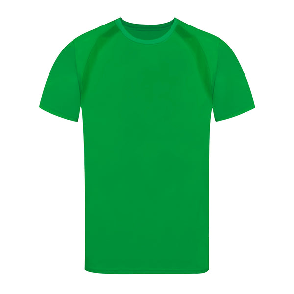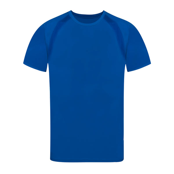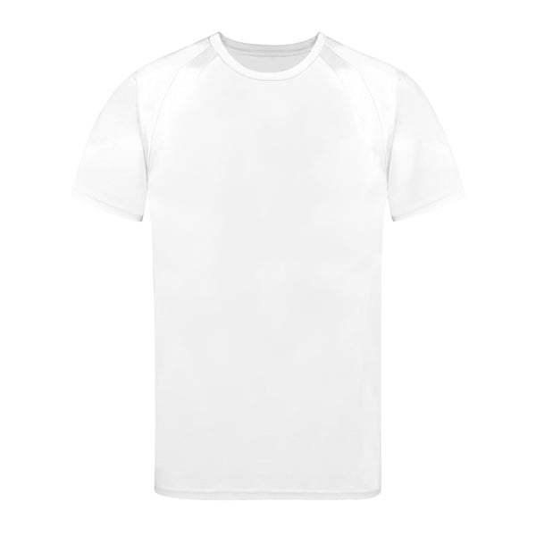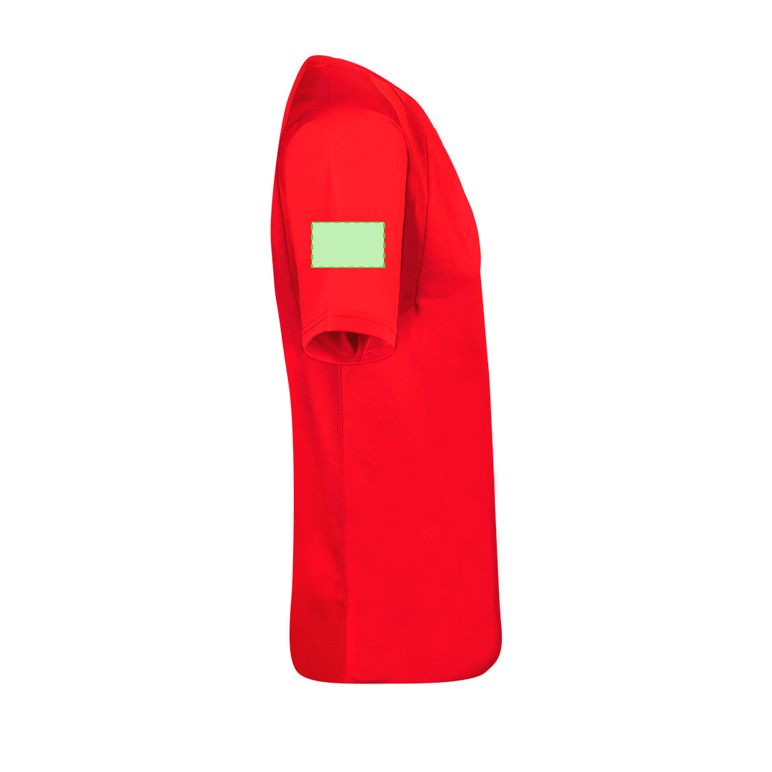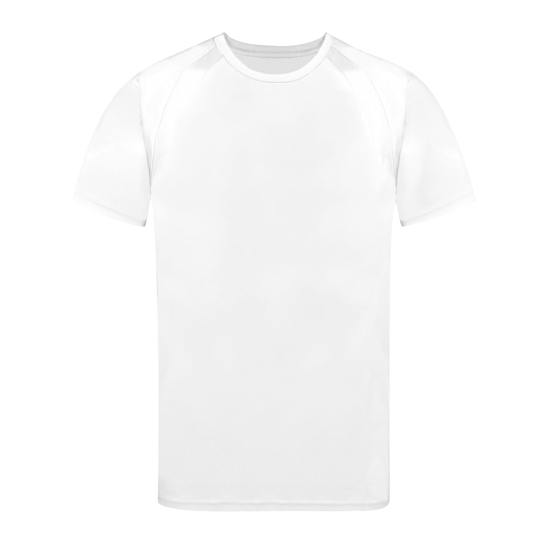 Adult technical T-shirt in 100% breathable polyester material 135g/m2. With raglan sleeves, round neck, and front-side bands in breathable, micro-perforated fabric. Available in sizes S, M, L, XL, XXL.