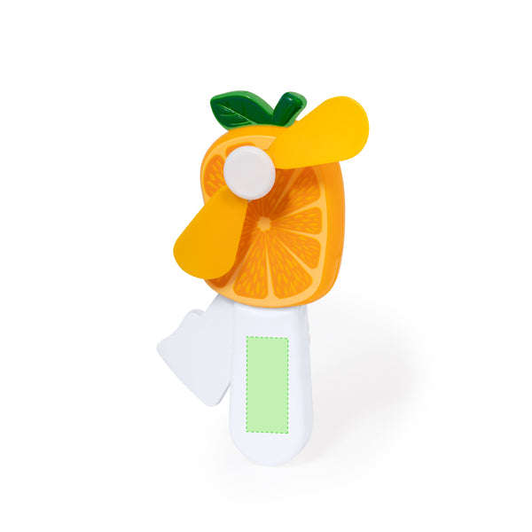 Fan in fun fruit shapes, made of resistant ABS. Manual operation by continuously pressing the lever integrated in the handle for moving the blades. Available in strawberry, pineapple, grape, watermelon or orange designs. Individually packaged in a recycled bag.