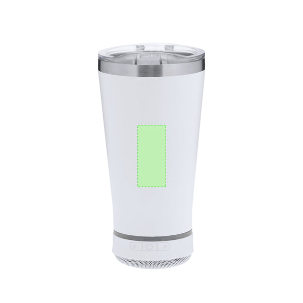 Insulated Cup with integrated 3W Bluetooth® 5.3 Speaker. With 440ml capacity and made in double walled stainless steel, ensuring maximum durability and excellent temperature preservation of both hot and cold beverages. It is ideal for your desk, table, or any surface where you can enjoy your favorite drink. It includes a snap-on closure and an easy-open, BPA-free dispenser. With a matching non-slip base provides stability. The Bluetooth speaker integrated at the base of the cup is easily removable using its screw-on system, and includes intelligent RGB LED illumination, which is synchronised to the rhythm of the music, creating a unique visual and listening experience. In addition, the hands-free function enables call answering without leaving what one is doing.