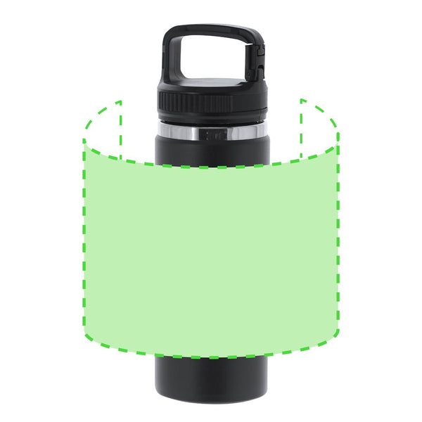 Thermal bottle with a capacity of 550 ml, made of recycled stainless steel with double walls. Has a functional handle with a dual function of a carabiner for comfortable and versatile transport. With a screw cap and matte base, complemented by an elegant decorative silver ring. BPA free.Steel is among the most demanded materials and can be found almost everywhere, from everyday products to large constructions. With countless properties, including durability and high reusability, it is a highly valued alternative in sustainability solutions. When properly treated, it allows for obtaining new resources of infinite use.