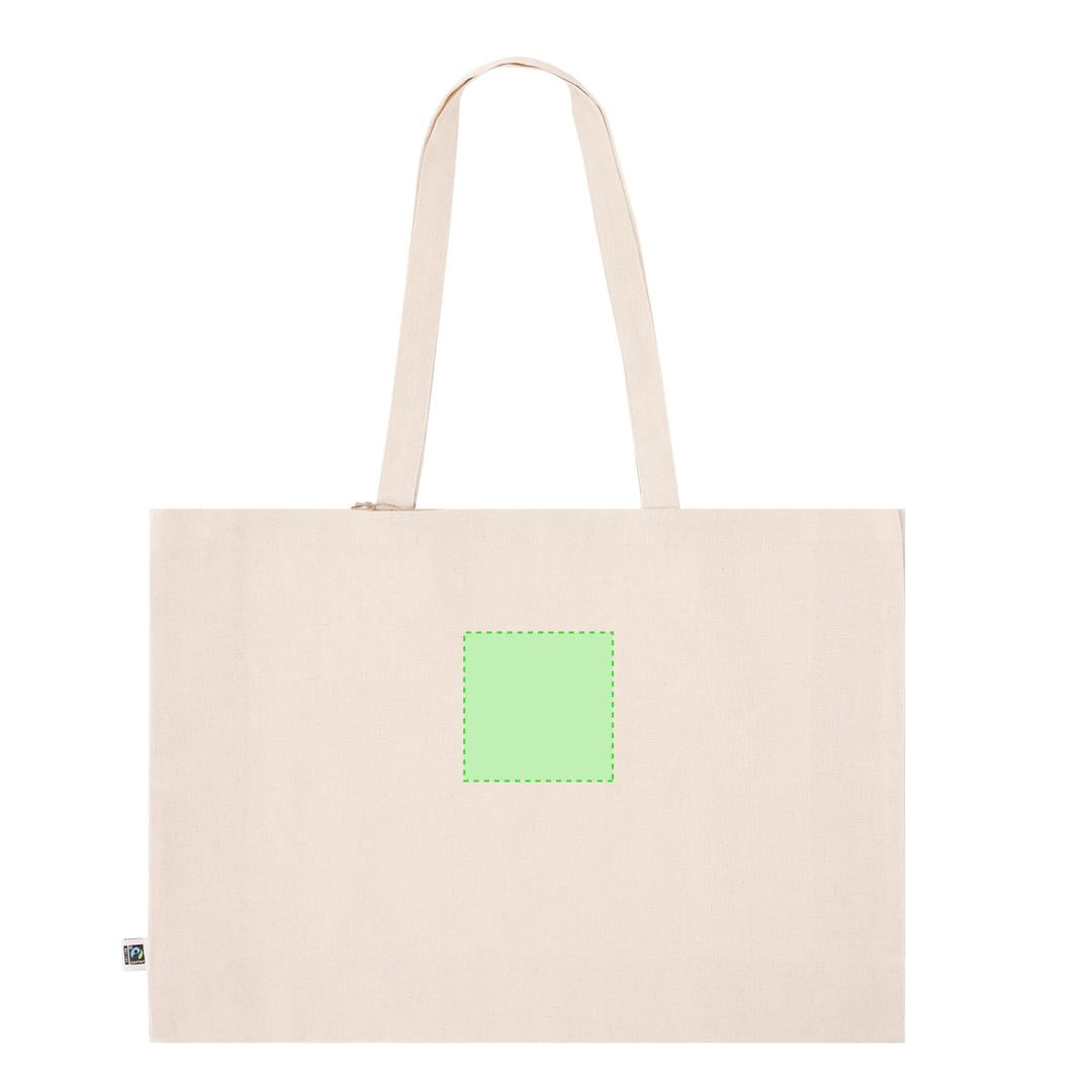 Bag made mainly of 220g/m2 cotton. With Fairtrade certification, a fair and alternative trading system that promotes the development of peoples and the fight against poverty. Sewn finish with gusset, reinforced long handles of 70 cm and weight resistance up to 10 kg. Includes Fairtrade label and distinctive hangtag made of recycled cardboard.