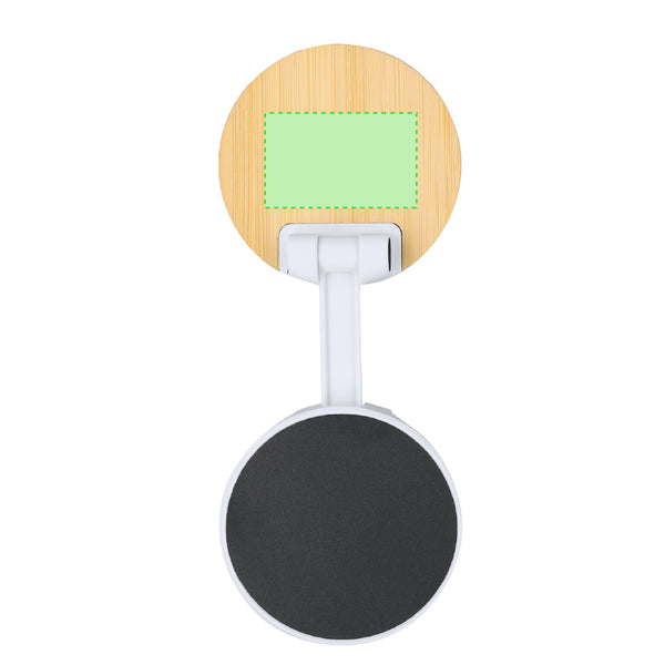 Foldable holder for smartphones. With magnetic attachment, MagSafe, and adjustable position for greater comfort. Includes an adhesive metal ring.Materials like bamboo promote the use of natural raw materials, reducing polluting emissions. It comes from a resilient and versatile plant, with rapid growth and regeneration, making it an excellent alternative to traditional wood use.