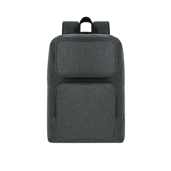 Backpack made from soft RPET 600D polyester. With main pocket with zipper closure and double pull. Interior pocket for a laptop of up to 15 inches and tablet of up to 10 inches. Includes two front pockets with zipper closure and a pocket on the side. Padded adjustable back and straps. Includes a transport strap for adjustment on a trolley or suitcase, ideal for travel. With RPET designation on the label.RPET material is made from recycled plastic, promoting the reuse of plastic waste and helping the sustainability of the planet.