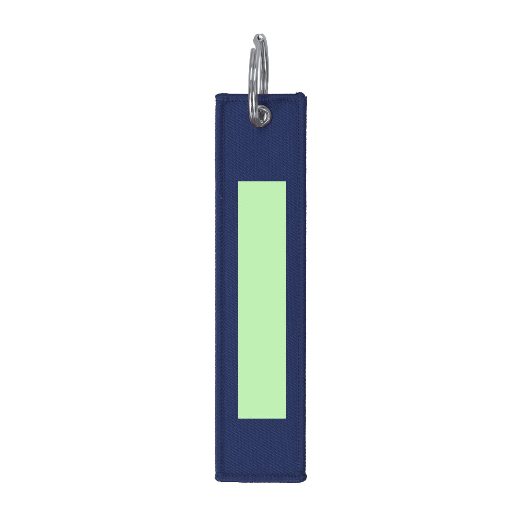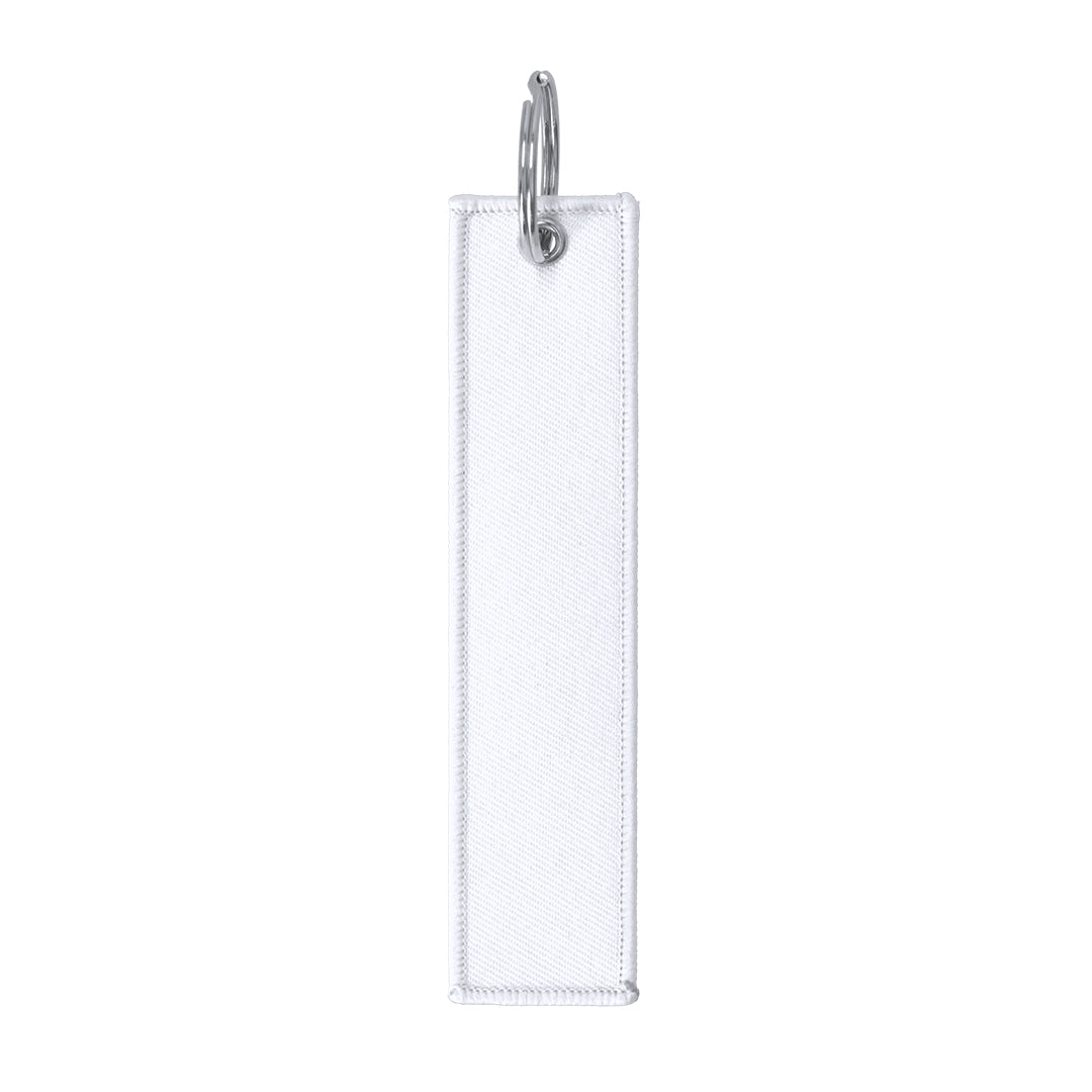 Keychain with seams on the edge in a color matching the polyester body. Includes two silver metal rings. Main ring ideal for keys.
