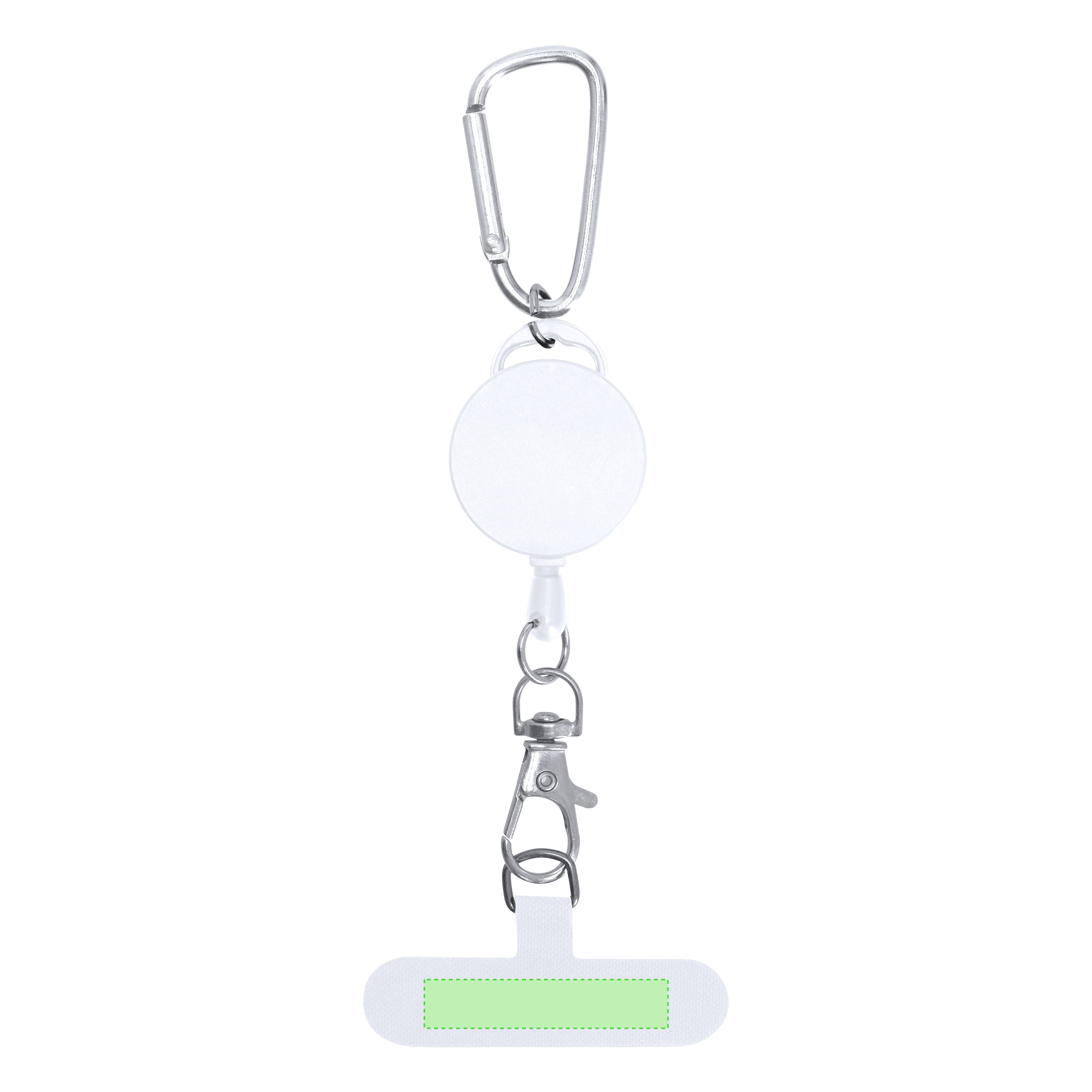 60 cm extendable smartphone holder. Carrying accessory to place between the case and the smartphone and metal rotating carabiner. Includes a carabiner at the end for hanging and easy transport.