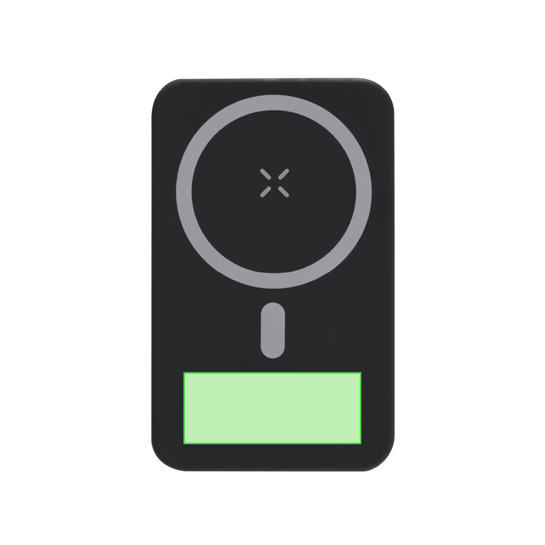 15W external auxiliary battery large charging capacity 10,000 mAh in Recycled ABS. With Magsafe magnetic fixation. It has 1 USB, Lightning, Micro USB output and Type C and Lightning inputs. In addition, it has a practical and functional stand to put your smartphone vertically. Includes distinctive RABS logo.