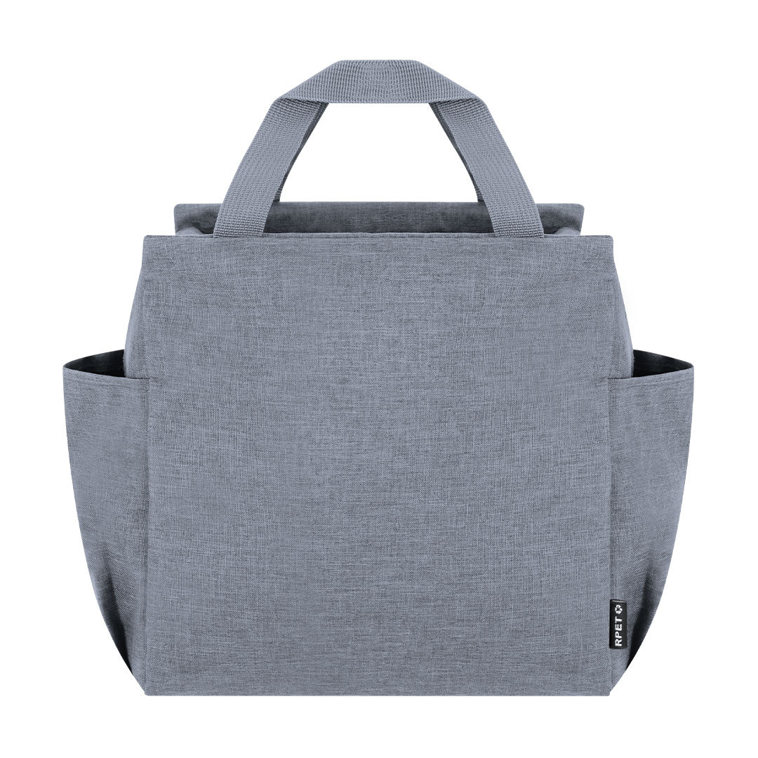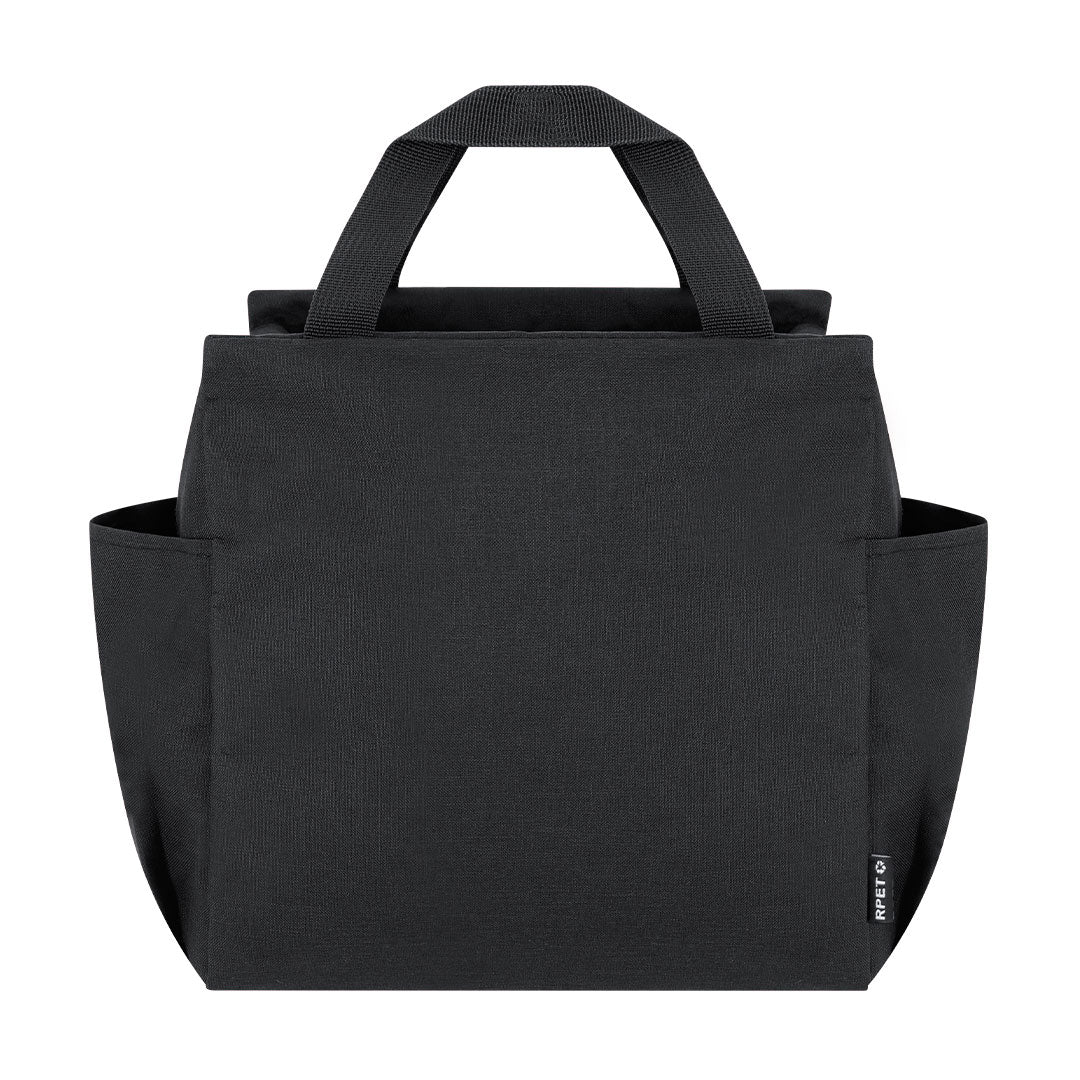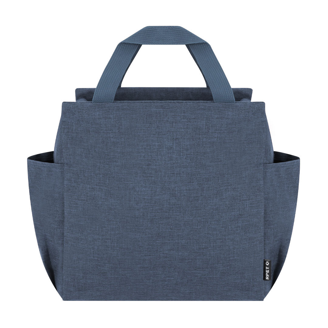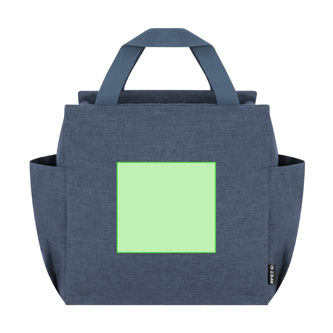 Insulated cooler bag made of 600D RPET polyester. Padded main compartment with zipper closure with metal puller. On the sides it has open pockets, and roast for easy transport on top.