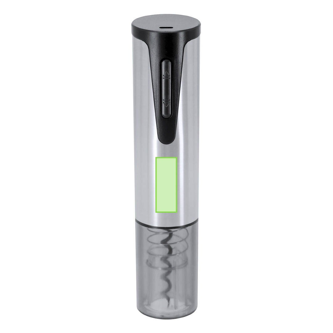 Electric corkscrew made of stainless steel and ABS. It has an extraction indicator button and cork ejector. With light indicators during charging and use. 500 mAh rechargeable battery, includes type C charging cable. An easy-to-use and functional device.
