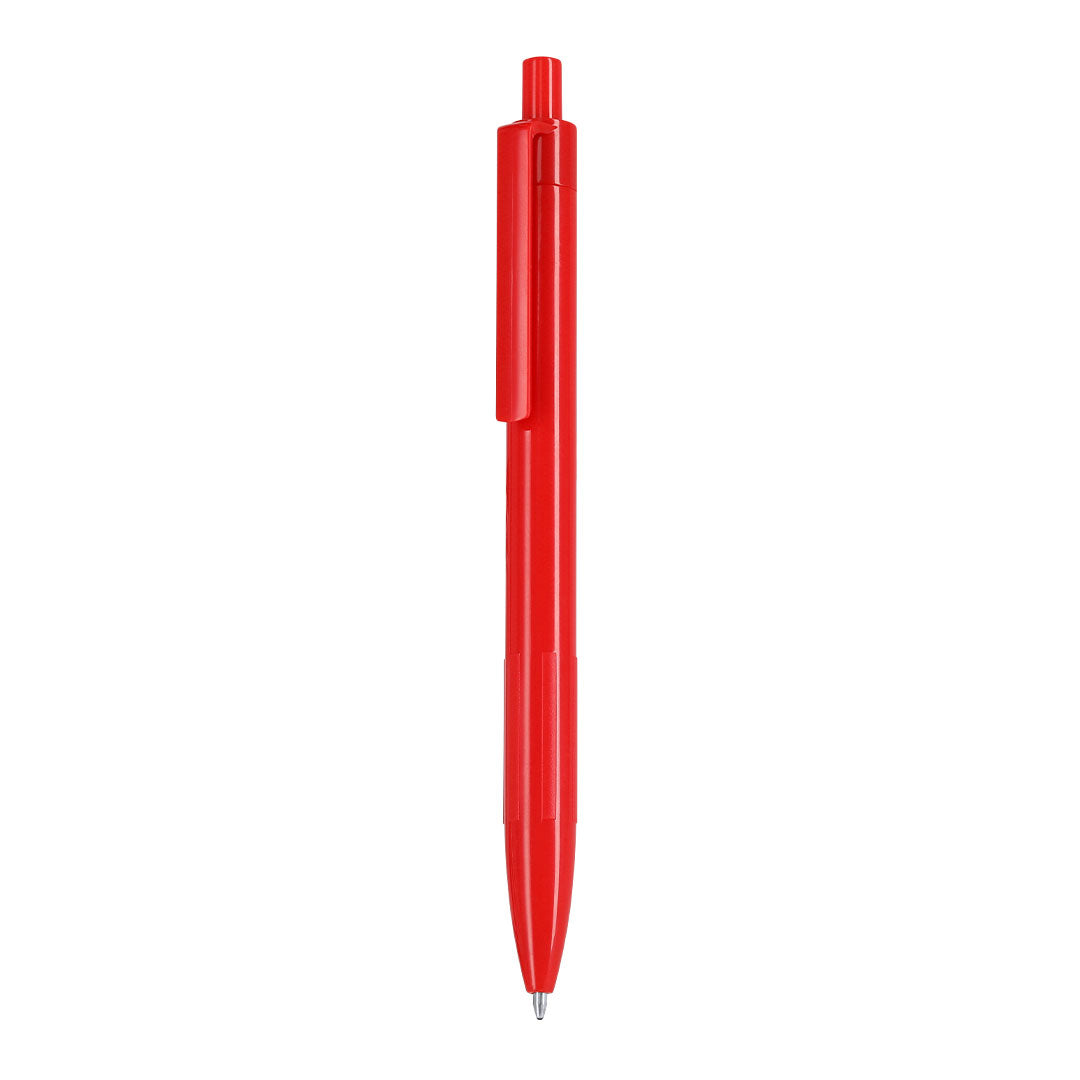 Pen made of RABS. Push-button mechanism clip in blue ink. RABS badge on the top of the pen.