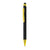 Push-button mechanism pointer pen made of recycled aluminum. Push button, metal clip and tip in glossy finish. Body finished in rubber, specially designed for laser marking with mirror effect. Distinctive recycled aluminum on the top of the pen. Jumbo charging and in blue ink.