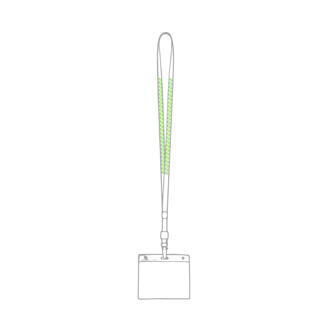 Identifier in PVC with matching color lanyard in bright tones and with carabiner closure. Circular tablet for printing.
