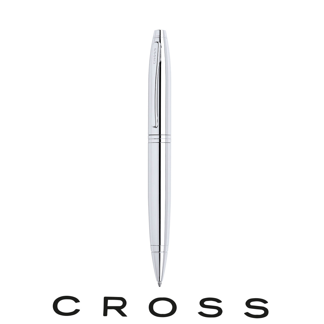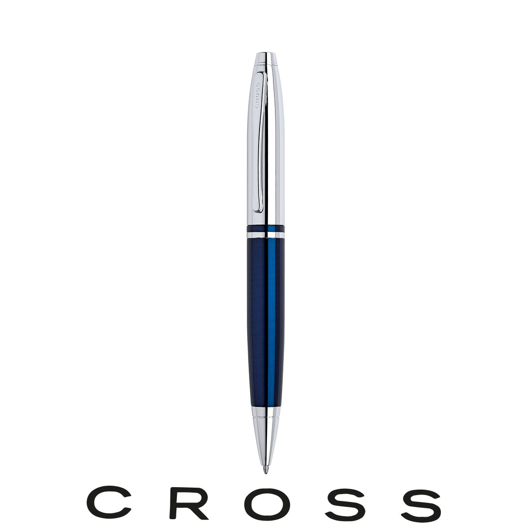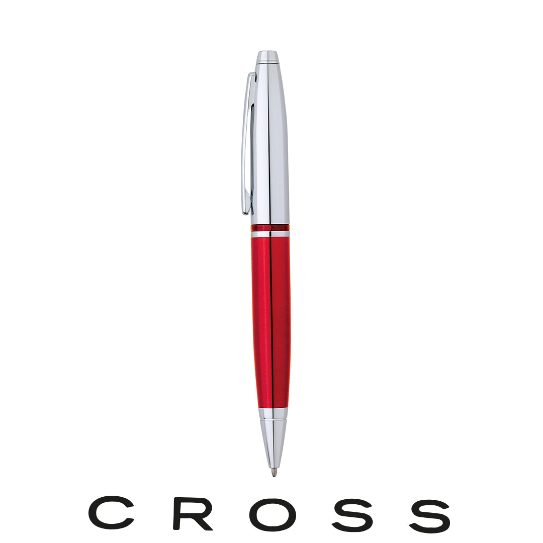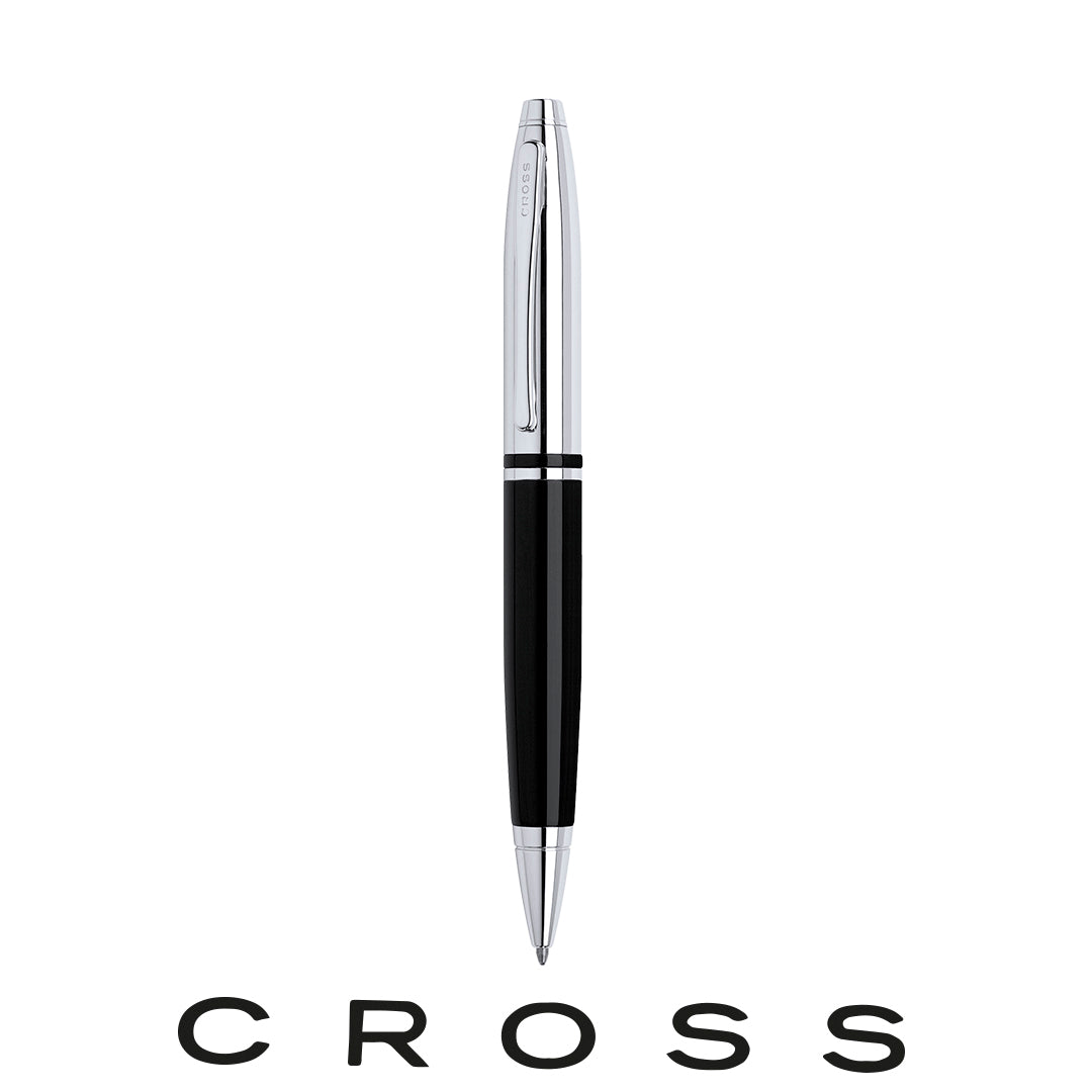 Ball pen Calais by Cross. With retractable mechanism, elegant bicolor design and metal body in smooth finish in varied colors. Presented in an elegant individual case in black, with the brand logo and inside in soft velvet. Black ink.