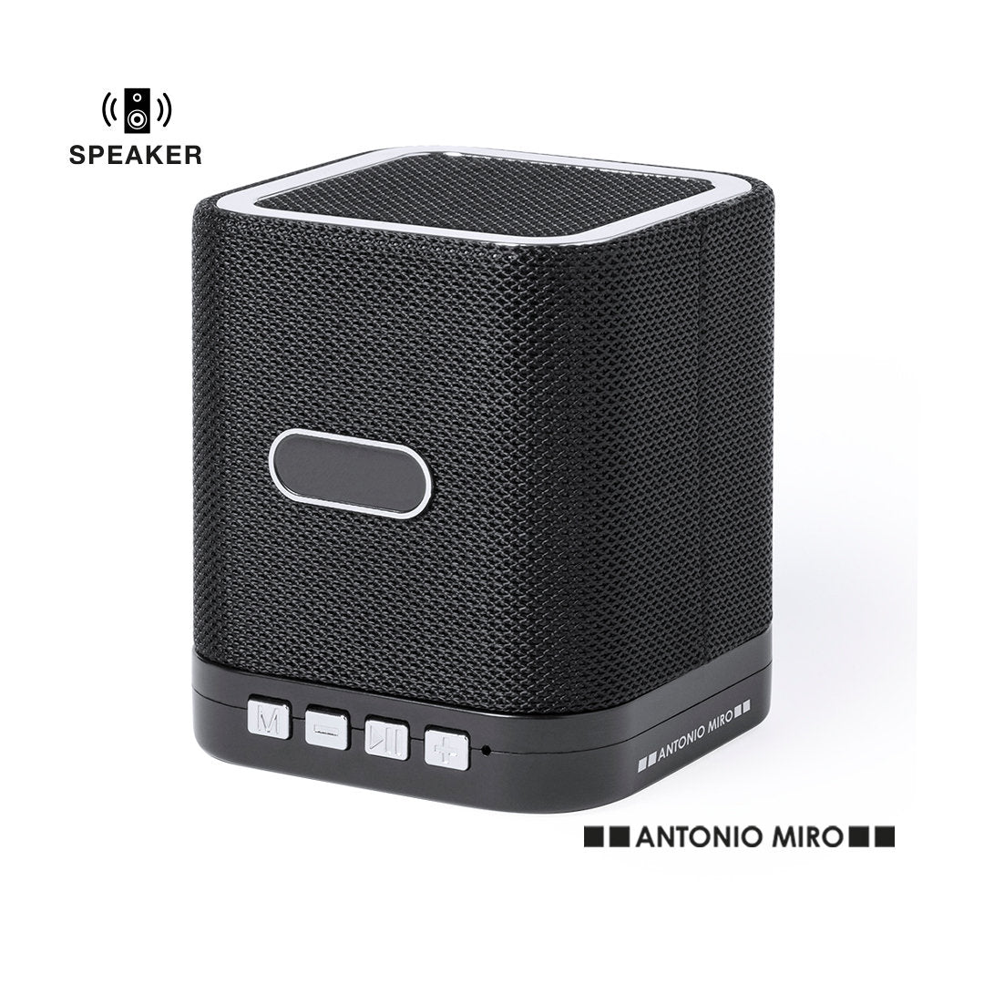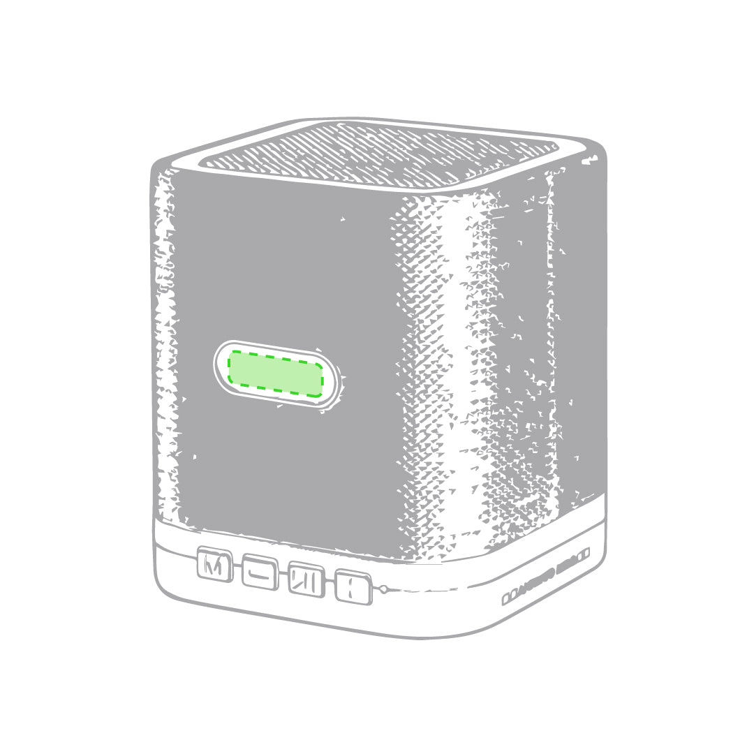 Bluetooth® docking speaker. In bicolor polyester fabric with body in soft rubber finish. It offers 3W of power, has hands-free function, a mini SD card slot up to 32GB and auxiliary line input via 3.5mm jack connection. Compatible with iOS and Android, includes mini USB charging cable, 3.5mm auxiliary jack cable and comes in an attractive design box. With non-slip rubber supports on the base.