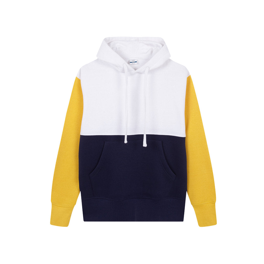 Tricolor unisex hooded sweatshirt, with kangaroo pocket and extra wide elastic bands for a perfect fit. Made in combination of cotton and polyester 280g/m2. In side in brushed terry for a premium quality feel. Soft touch and modern cut, with adjustable flat strings and embroidered eyelets, avoiding the use of metal. Double stitching for durability and resistance to intensive wear. Easily removable label and available in sizes XS, S, M, L, XL and XXL.