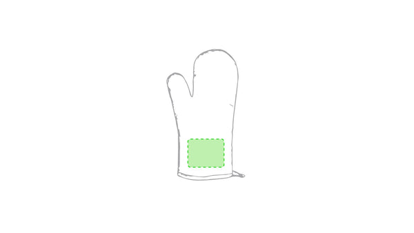 High quality kitchen mitten in soft cotton material with bright tones. With a smooth side especially designed for printing and hanging ribbon.